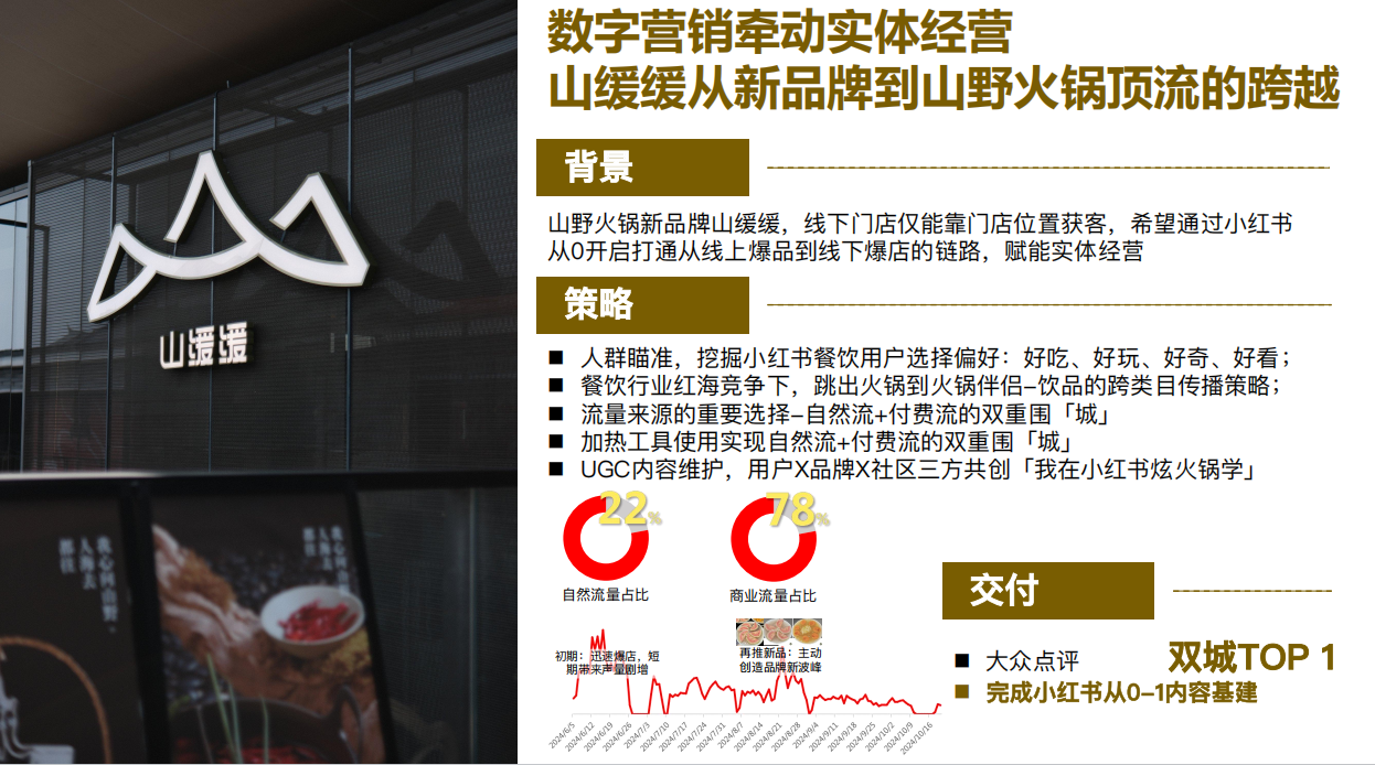 崇远文化的服务能力已覆盖大健康、美妆个护、本地生活等多个领域。山野火锅品牌山缓缓通过“用户×品牌×社区三方共创#我在小红书炫火锅学”话题,结合自然流与付费流双重引流,从0做到大众点评双城TOP1;母婴品牌袋鼠妈妈新品“双萃精华油”通过孕期与产后人群细分运营,实现全域ROI超9。