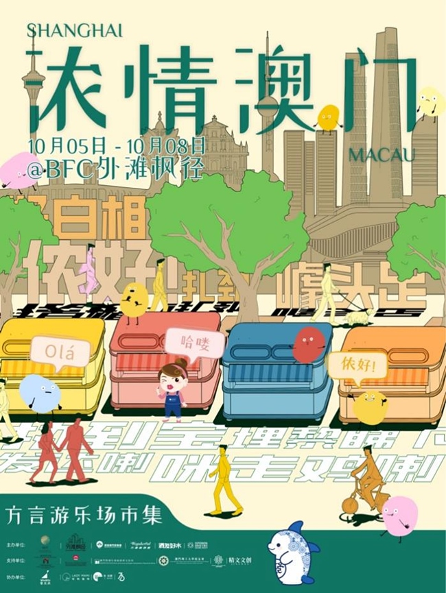 当一句上海“侬好”遇见葡语“Olá”,当“老灵额”混搭“执到宝”,热闹的市集瞬间变成方言交汇的游乐场。这个国庆,浓情澳门市集联合澳门特色商户、上海老字号及多家亮点品牌,在上海BFC外滩枫径共同打造了一场别开生面的方言游乐场市集!