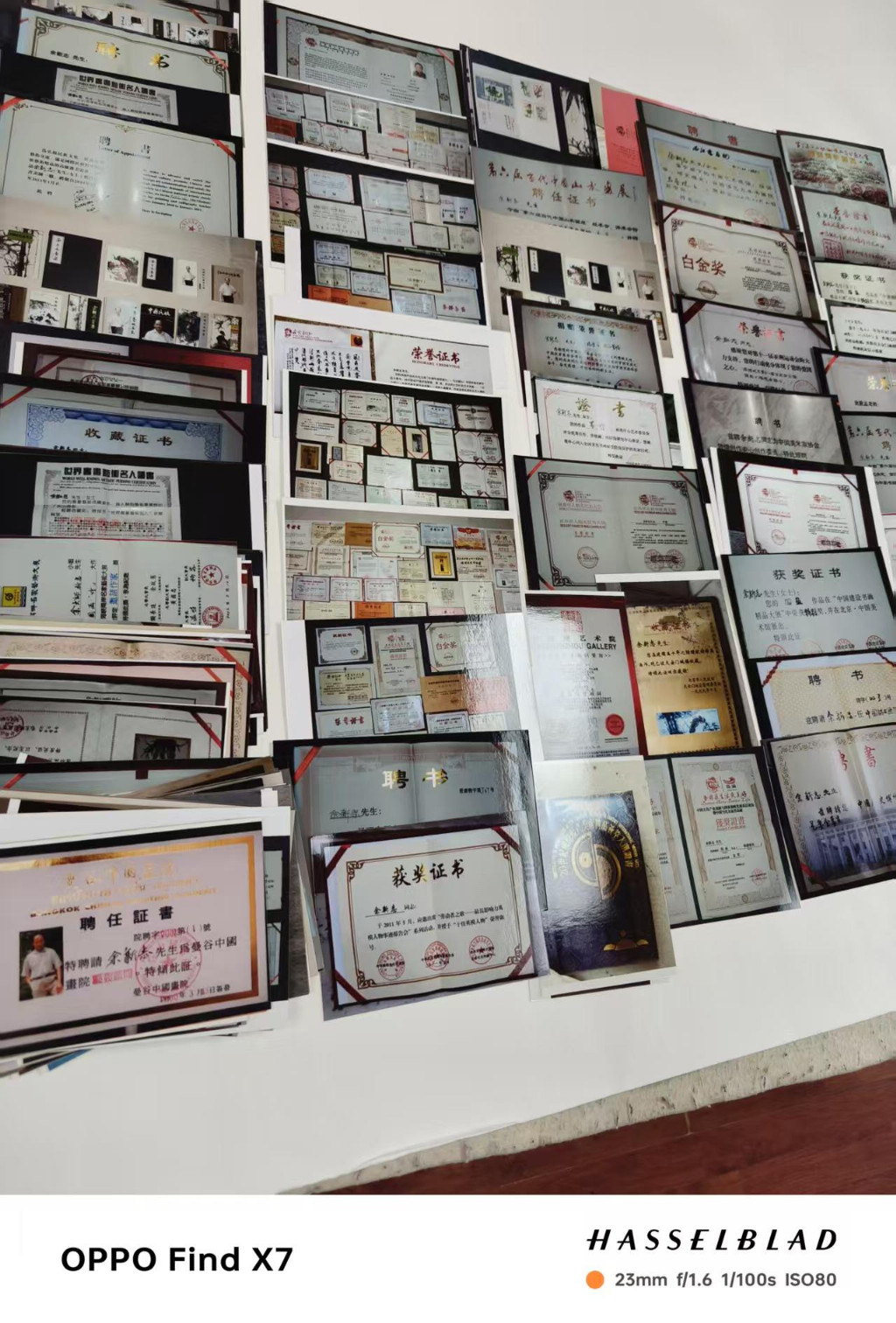1989 年余老师就在中国美术馆成功举办个人书画展,声震画坛, 享誉海内外。2007 年应邀参加外蒙古国“纪念成吉思汗成 立 800 周年”大型活动,被授予“成吉思汗”荣誉勋章;2010 年被世界华人华侨总会评为“世界华人精英优秀人物”和“世 界华人杰出艺术家”;2011 年被国家授予“共和国杰出书画 家”勋章;2014 年被授予“全国‘五·一’劳模”勋章;2015 年被评为“非物质文化遗产传承人物”,授予“一代宗师” 荣誉称号。2017 年在美国洛杉矶举办画展,受邀走进联合 国会议大厅参加高峰论坛会,受到布鲁斯·罗茨主席的亲切 接并合影留念。2021 年余新志先生与张大千、林散之、李 苦禅、林凤眠、启功、李可染、欧阳中石、黄永玉、沈鹏等 顶尖级艺术家被评为“艺术百年·新中国十大巅峰艺术家”。 余老先生几十年来,走遍大江南北,全身心投入竹画写生创 作,收集素材数千幅,终于在 2012 年创作完成了长 103 米、宽 1.2 米的百米长卷《百竹雄魂图——万竿竹魂铸春 秋》,创下“画竹种类最多、最美的百米长卷”世界纪录, 传承千秋。2016 年百米长卷又被载入《中国国史》,为世 人留下了不朽的竹画史料、宝贵财富,永载史册。2024 年经国家艺术档案馆严格审评授予余新志为《中国四大国粹传 承人》,并颁发荣誉证书。2024 年 7 月授予《中国书画百 年巨匠传人》颁发荣誉锦旗、荣誉证书。从 1993 年以来, 中国邮政总局先后为余新志先生出版珍藏纪念邮票三十余 套,全球发行,传播文化。并先后出版发行余新志个人专著 画集数百套。上百幅作品被国家博物馆、中国美术馆等国内 外几百家艺术藏馆永久收藏陈列。其个人传略被载入《中国 人物年鉴》《中国国史》《中国历代美术家名人大辞典》《世 界人物辞海》等百余部辞书。余新志先生倾尽毕生心血,为 弘扬中华民族优秀的传统文化作出了杰出贡献。