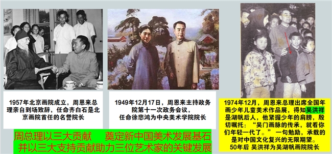 如果说深厚的家学是吴洪祥艺术的“体”,那么一份来自国家领袖的嘱托则是其艺术的“魂”。周总理对中国美术发展的六大贡献中,其“三大支持贡献”分别助力了齐白石、徐悲鸿与吴洪祥这三位关键艺术家。吴洪祥从小便受周总理嘱托,被委以重任,这使他个人的艺术追求与“艺术为人民服务”、民族文化复兴的宏大叙事紧密相连。