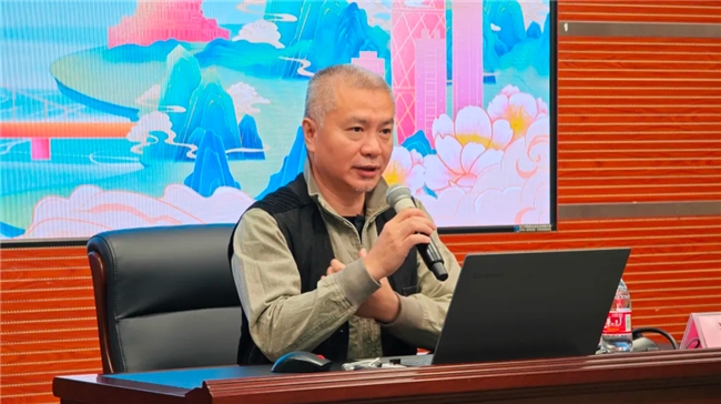 在美术专场培训中,广东省美协综合材料绘画与美术作品保存修复艺委会主任、广州美术学院材料技法·修复研究室主任许炀以《综合材料绘画的目标与方法》为题授课,他系统讲解了创作理念、核心技法及近十年广东发展成果,结合中西艺术发展史,展示如何将木板、树皮、金属、织物等非常规材料融入创造中,为解决“传统绘画材料和语言单一化”这一难题提供了切实可行的解决方案。