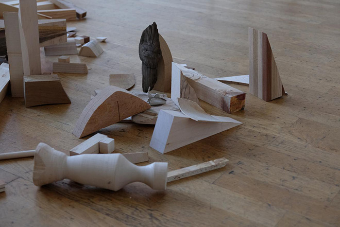 在作品《Come as you are, as you were》中,雷艺晴将各种形态不一的,棱角分明的,雕刻过的,残缺的、模糊的木头碎块,用一种看似有意又好像无意的方式散布于展览空间。