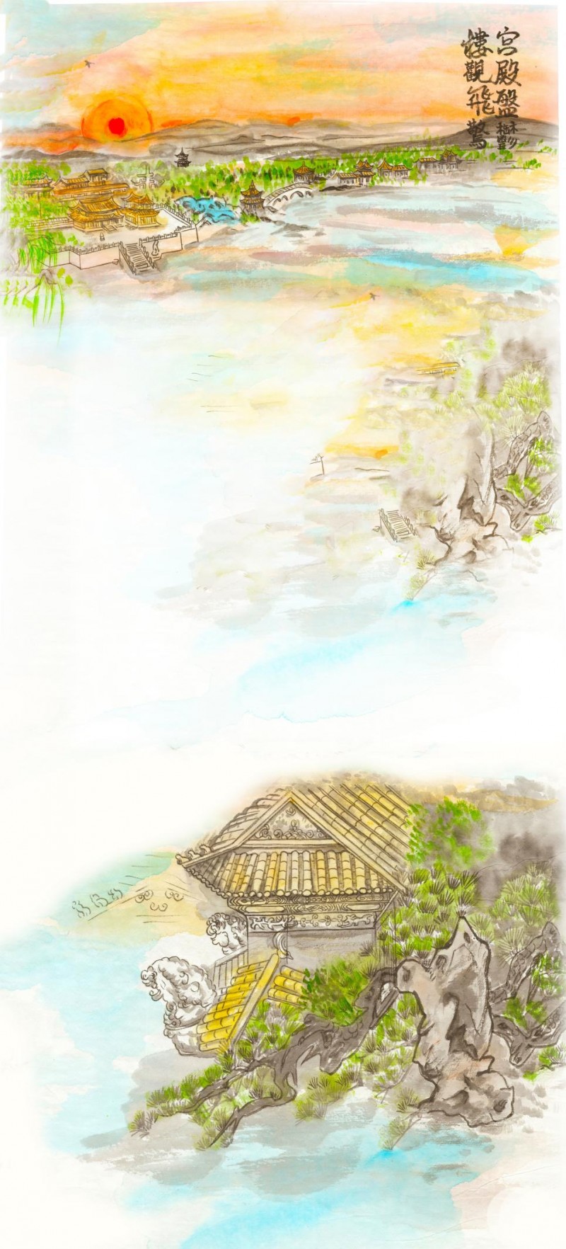 ★ 每幅画面经古法托裱,可展开为拼图100米水墨长卷